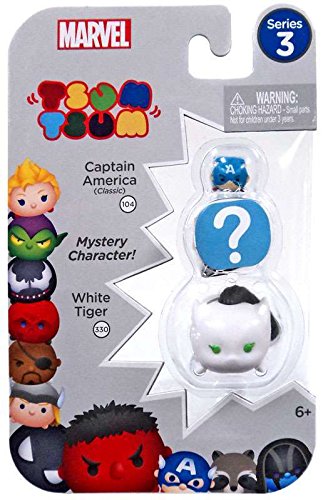 -. Feature : Marvel Tsum Tsum Series 3 White Tiger, Captain America & Mystery Figure Minifigure 3-Pack / White Tiger #330 & Captain America #104 / Comes with 3 different-sized mini figures! Collect them! Stack them! / Marvels cutest characters are cuter than ever with our Mini ''Tsum Tsum'' Collection. / Ages 6 and up. From Jakks