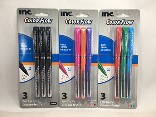 -. Title : I-N-C Color Flow 9 Pack Felt Tip Pens