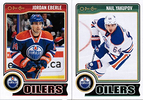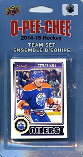 Edmonton Oilers 2014 2015 O Pee Chee NHL Hockey brand new factory sealed 16 card licensed team set made by Upper Deck including Andrew Ference, Viktor Fasth, Jordan Eberle, Ben Scrivens, Ryan Smyth, Ryan Jones, Ryan Nugent-Hopkins, Jeff Petry, Boyd Gordon, Mark Arcobello, Anton Belov, Justin Schultz, David Perron, Nail Yakupov, Taylor Hall and Sam Gagner.