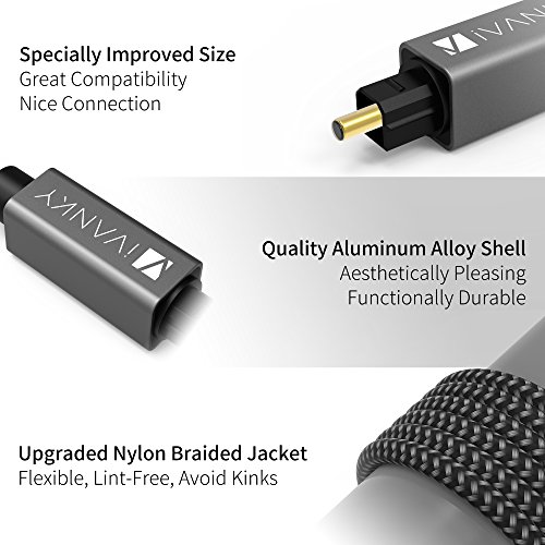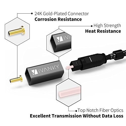 • iVanky Digital Audio Out Optical Cable with aluminum alloy shell is built to last long. Get this Toslink Optical Cable to achieve full immersion into your favorite music, movies, video games and more.