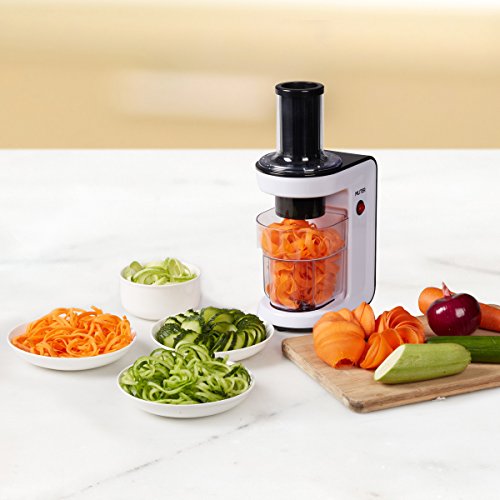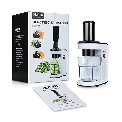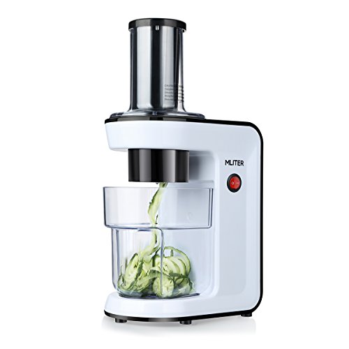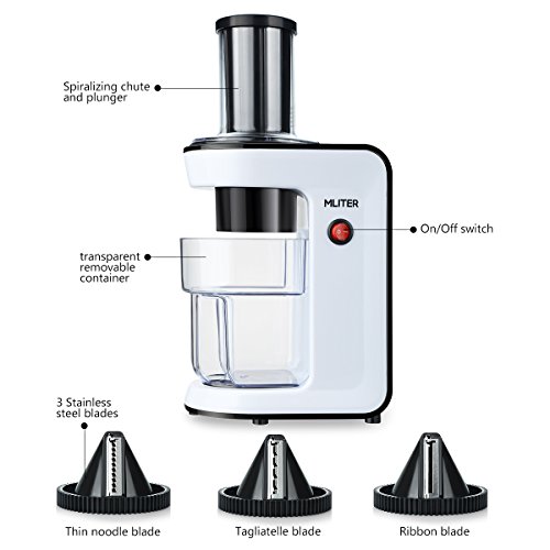 MLITER Electric Spiralizer Spiral Vegetable Slicer with 3 Blades and 1.0L Compact Storage Vegetable Noodle Maker suitable for most vegetables and fruits 80W White/Black