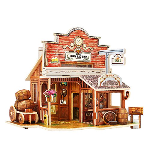 -. Title : Creative Assemble Puzzle Toys Child Early Education Wooden 3D Puzzle House American Western Bar