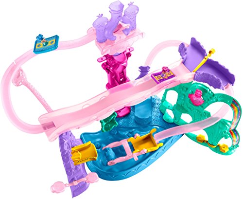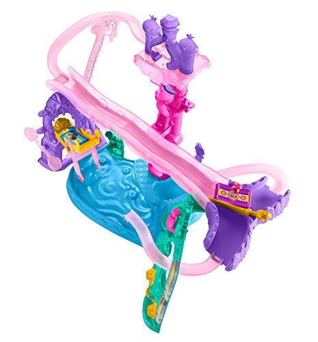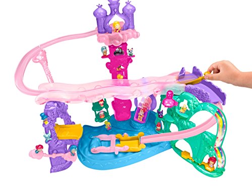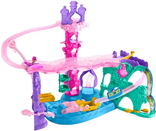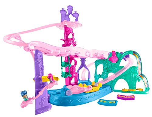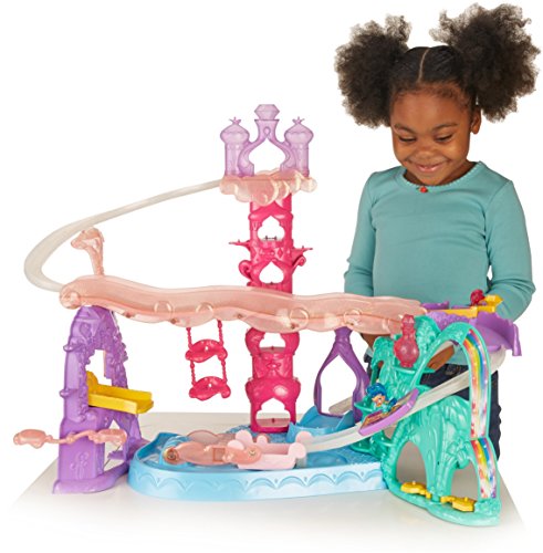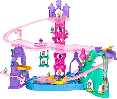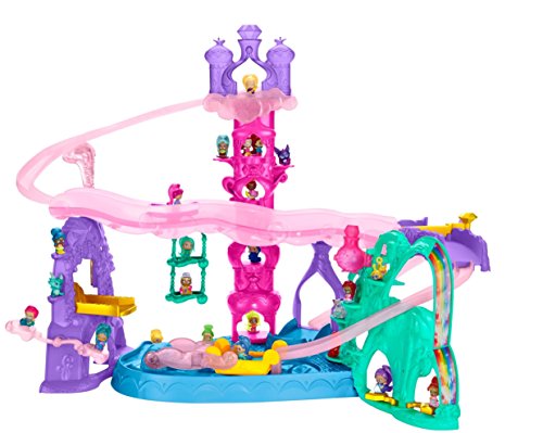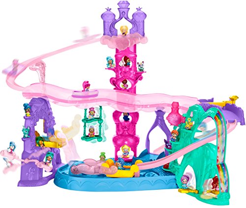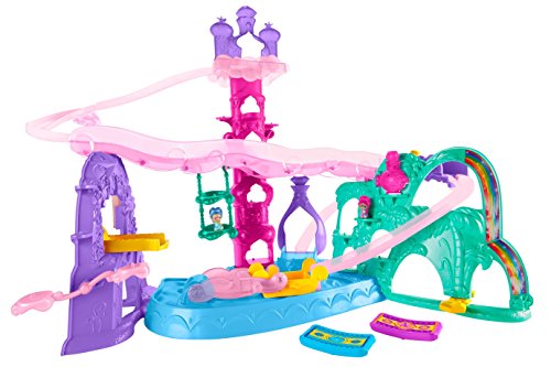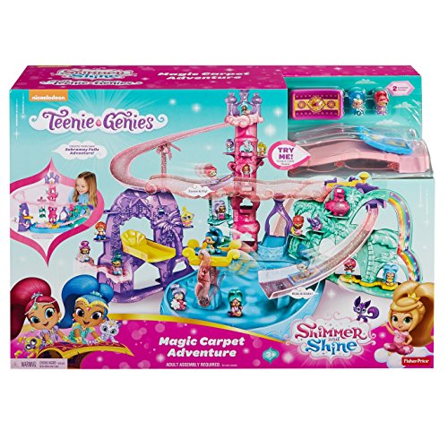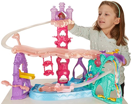 Wishes come true with this Teenie Genies playset, featuring all of the magic and adventure of Shimmer and Shine’s genie world! Little genies can take their Teenie Genies on a magical carpet ride, flying and zooming through Zahramay Falls! Shimmer and Shine can fly down from their palace and then land on the magical cloud track! As the carpet moves across the track it will hover and float like a real magic carpet! The playset also features a simple switch to allow kids to choose their path, either sending Shimmer and Shine down the slide and through the archway, or high above the clouds on an enchanted gondola ride! There are even more special surprises to delight your little genie and inspire hours of imaginative play, including a spinning carousel, a seesaw and a twin swing for Teenie Genies! The playset comes with two magic floating carpets and two exclusive figures—Friends Divine Shimmer and Friends Divine Shine. The playset features lots of places to peg and display more of their Teenie Genies collection! Additional Teenie Genies sold separately and subject to availability.Feature