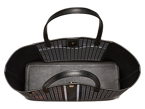 Product Description Holds a 15" laptop, a pair of flats, a continental wallet, a small umbrella and an iPhone 6 Plus Water-resistant coated canvas Magnetic snap closure Leather shoulder straps with 9.16" (23 cm) drop 1 interior hanging pocket Height: 11.55" (29 cm) Length: 15.54" (39 cm) Depth: 5.78" (14.5 cm) 0