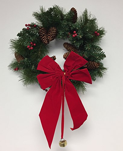 18" Wreath with Berries and Pinecones, Unlit, (Removable Red Bow Included)
