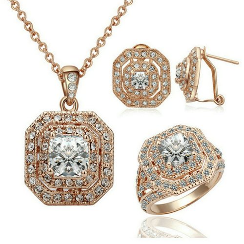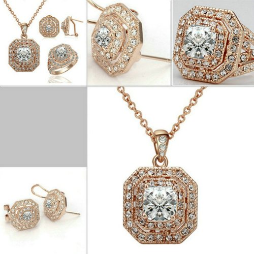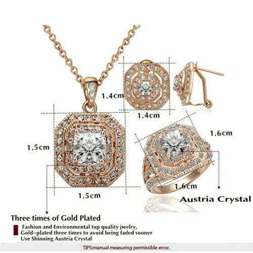 -. Binding : Jewelry -. Brand : Yoursfs -. Department : womens -. Feature : This set will be a good gift. Shipped out in an exquisite jewelry gift box which can be used as a gift directly. Need no other packing. / The set consists a ring, a necklace and a pair of stud earrings. Vintage style. Shiny square cubic zirconia in the center with two circles of clear Austrian crystals around it sparkling beautifully. The set is 18k rose gold plated. / It's a perfect accessory to your outfit or as an appropriate gift used in wedding and engagement party or other occasions. / The chain is about 15.7'' long. The square part size is about 0.6''*0.6''. / Delivery time is about 3-7 days by Amazon fulfillment Center.One year warranty to ensure you a perfect shopping experience. -. Label : Italina -. Manufacturer : Italina -. Model : S399R3 -. MPN : S399R3 -. PartNumber : S399R3 -. ProductGroup : Jewelry -. ProductTypeName : FASHIONOTHER -. Publisher : Italina -. Studio : Italina -. Title : [Retro Series] Yoursfs 18K Rose Gold Plated Cubic Zirconia CZ Engagement Ring and Necklace and EarringS Set