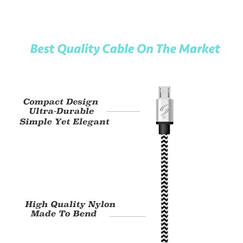 StyleTech Inc. Aluminum Nylon Braided Series 6 Feet Micro-USB Syncing/Charging Data Cable for Android, Samsung, HTC, Windows, Motorola, Tablets, etc. (3.) Blue - White - Pink)