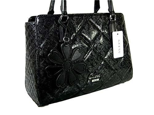 New Guess G Logo Embossed Purse Satchel Crossbody Hand Bag Piano Shinny Black