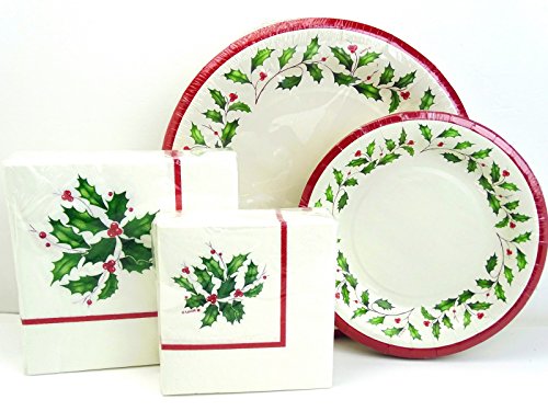 lxhol72 Lenox Holiday Holly Paper Plates and Napkins Set, 72 pc, Christmas