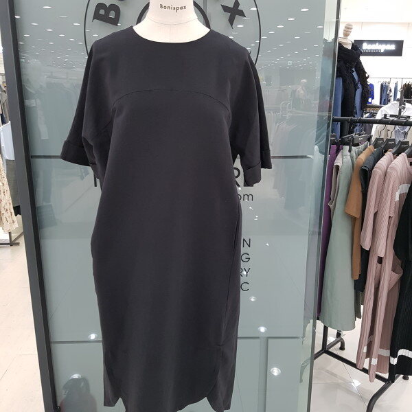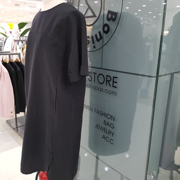 라운드 반팔 린넨 루즈핏 원피스 입니다ㆍ 앞이 살짝짧고 뒷라인이 긴 스타일로 다리가길어보입니다