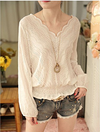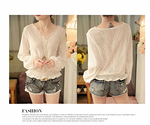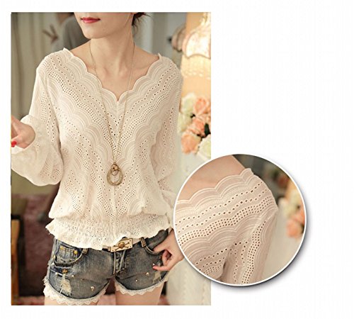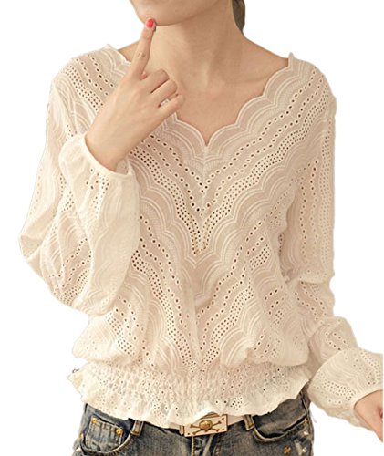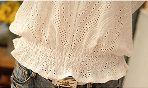 -. Title : (プチハピ)PuchiHapi カットワーク レース ブラウス シャツ 長袖 ホワイト オフィス 通勤 にも ガーリースタイル きれいめ ブラウジング ギャザー プルオーバー カットソー 春 夏 秋 レディース M~Lサイズ あり