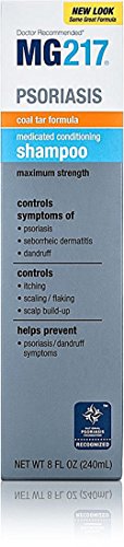 Studio : MG217 Publisher : MG217 Binding : Misc. Product Description The MG217 medicated conditioning coal tar formula shampoo relieves itching, flaking and dryness while promoting healthy, clear skin. Extra strength formula with conditioners effectively removes psoriasis scales. Contains coal tar solution usp 15% (equivalent to 3% coal tar). Helps stop the recurrence of psoriasis or dandruff symptoms while leaving the scalp clean and the hair manageable with a fresh, pleasant herbal fragrance. 0