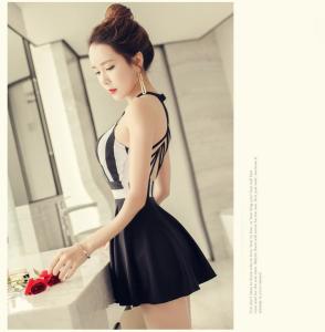水着 ワンピース ストライプ 編み上げ フレア プチプラセール 海 プール ビーチ 夏 トレンド 柄 バックデザイン