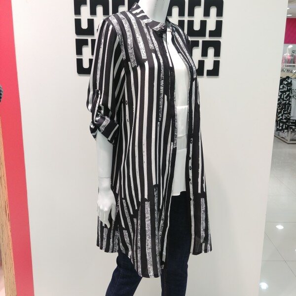 간절기에 가볍게 아우터로입기 좋은 롱 블라우스입니다 단추여밈으로 단품으로나 오픈하여 아우터로입기좋은 멋스러운 블라우스 입니다