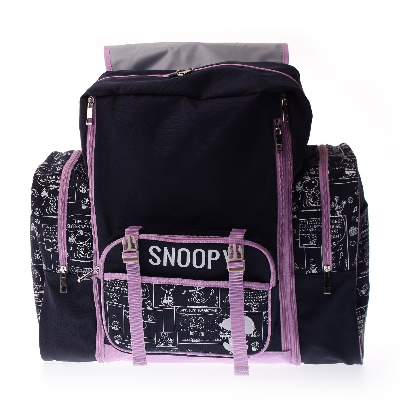 Snoopy design travel backpack ★ Snoopy's comic pattern is cute ♪ We have recently arrived a large capacity backpack for a forest school and school excursion ☆ It is possible to change from 42L to 50L with opening and closing of the fastener.