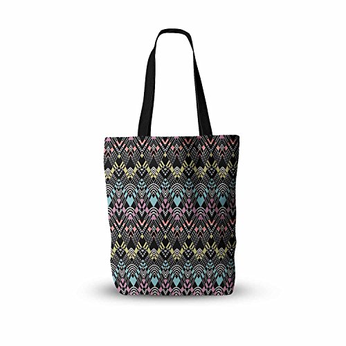 KESS InHouse Victoria Krupp "Tribal Zigzag" Black Multicolor Digital Everything Tote Bag, 13" x 13", Multicolor