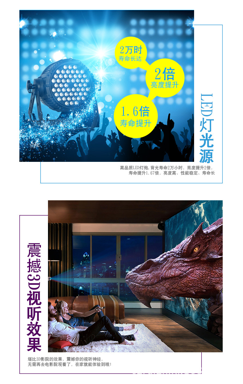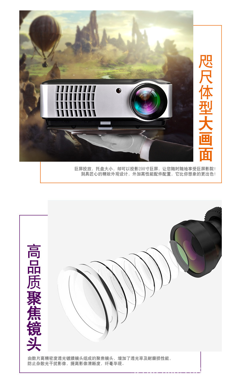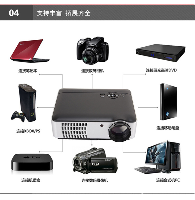 热销806商务办公教学投影仪 家用LED便携投影机1080P高清电影投影