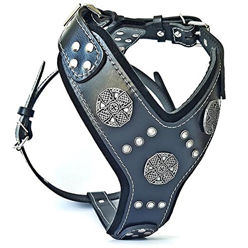 Studio : Bestia Publisher : Bestia Binding : Misc. Product Description BESTIA CUSTOM DOG GEAR® proudly presents: The "Maximus" harness, part of our "Exclusive" collection features a combination of two rivet models in old silver color. The base layer of this harness is high quality german buffalo leather. This harness features our patented 3 ply soft cushion on the chest plate, making it super comfortable for your dog. Available sizes: L/XL size: fits all large breeds starting at a chest size of: 23.6 inch (60 cm), fitting up to a chest size of 45.3 inch (115 cm) and a lower neck circumference of 17 to 25 inch (43 to 63,5 cm) XXL size: fits all giant breeds starting at a chest size of: 37.4 inch (95 cm), up to a chest size of 57 inch (145 cm) and a lower neck circumference of 21 to 33 inch (53 to 83,5 cm) ATTENTION! This size fits on giant breeds only, like Bullmastiff, Caucasian shepherd dog, Kangal, St. Bernard, Newfoundland, Neapolitan Mastiff, etc. Every harness comes with 2 chest straps! All metal parts are nickel plated. Please measure up your dog before ordering! Fits perfectly on all large breeds, like: Pitbull, cane corso, American Bully, American Bulldog, Bulldog, Presa canario, Rottweiler, Boxer, Amstaff, Staffordshire terrier, Bullmastiff, and many more.. ? 100% genuine leather ? soft padded ? handmade quality ? made in Europe ? unique design 0
