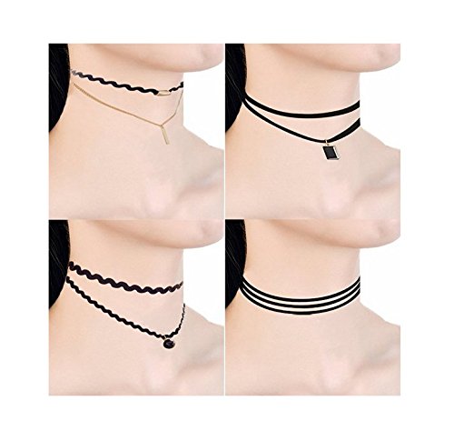 Choker Necklace, Black Stretch Velvet Gothic Lace Choker Necklaces Set for Women Girls,10 Pieces from Diames