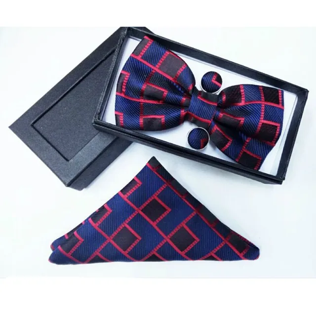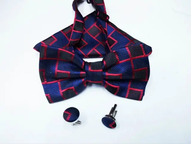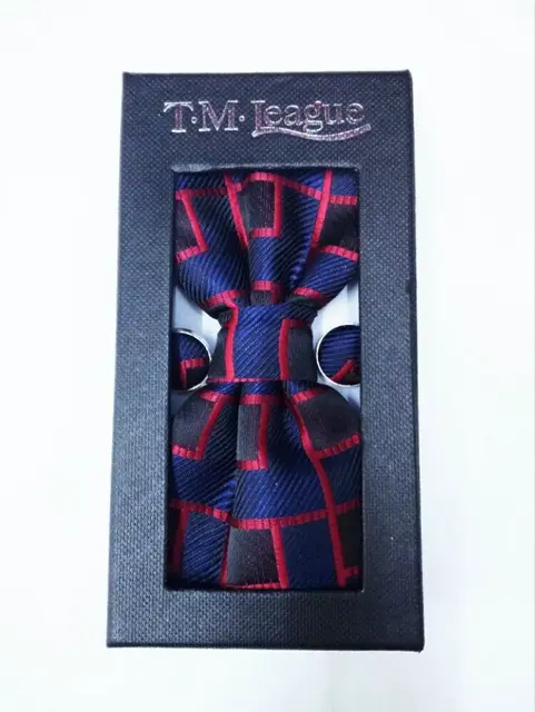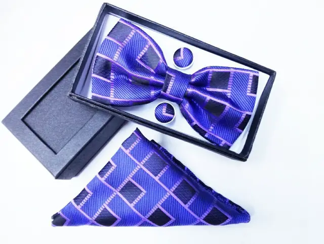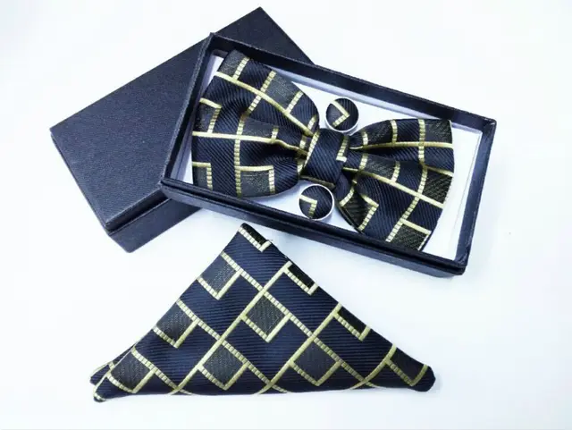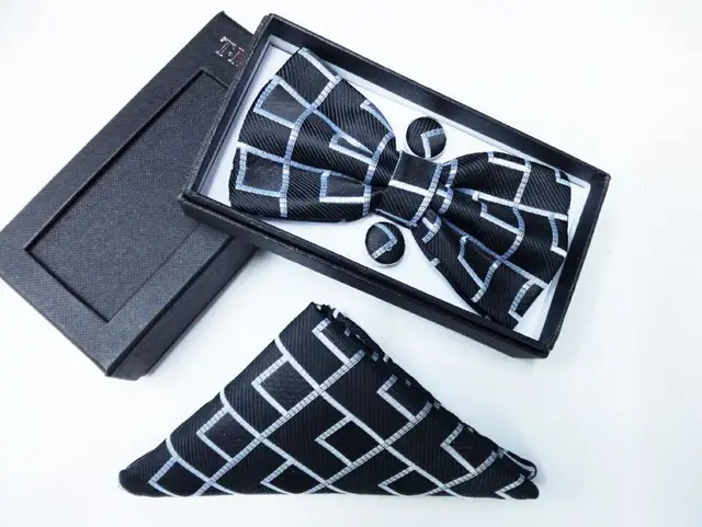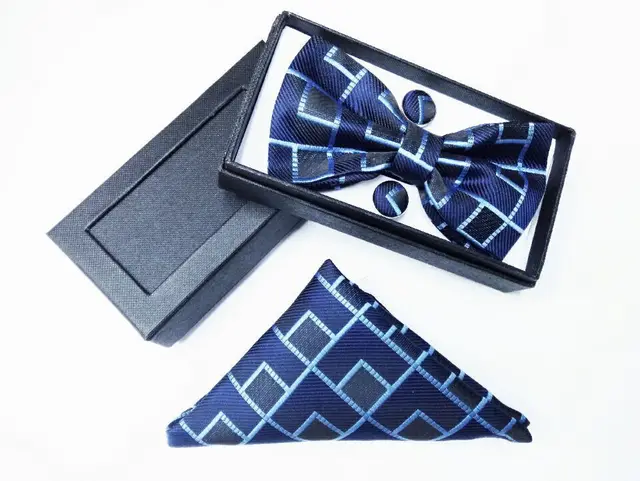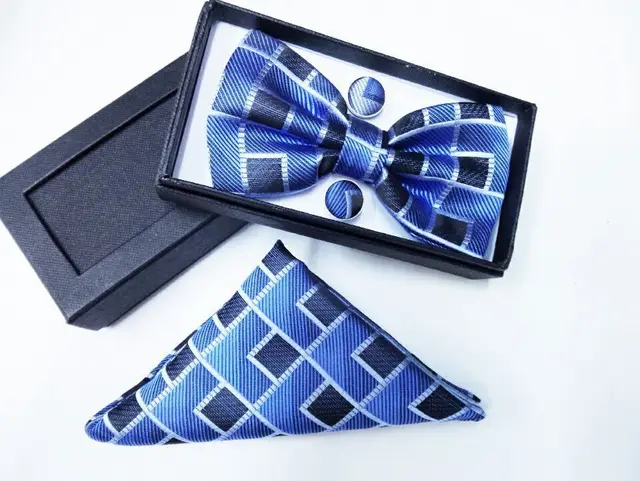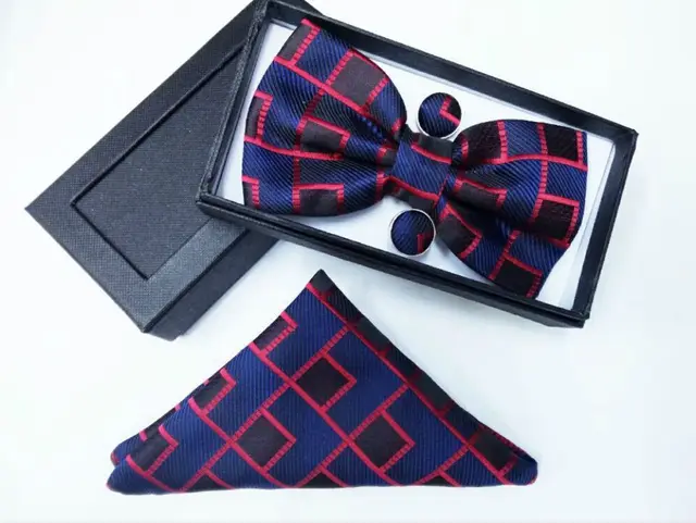 | [해외]SHENNAIWEI 100% 실크 자카드 짠 남성 나비 나비 넥타이 커프스 격자 무늬 나비 넥타이 포켓 스퀘어 손수건 정장 세트 상자 |