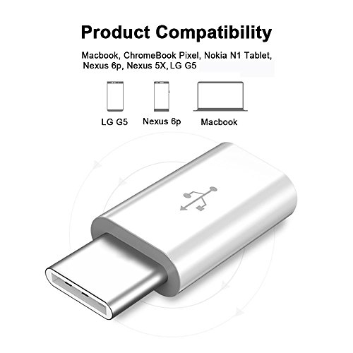 USB Type C Adapter, USB-C to Micro USB Adapter Converter, Compatible for MacBook, Nokia N1 Tablet, ChromeBook Pixel, Nexus 6p and more Type-C Devices (Pack of 5)