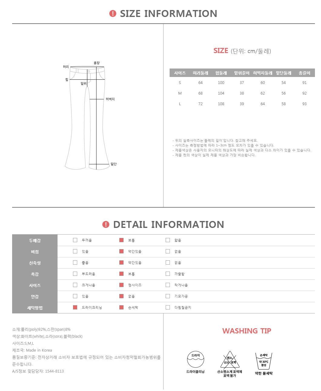 르비엔 와이드 팬츠 #73542 와이드한 품으로 여유롭고 세련된 스타일을 연출하는 슬랙스! 하늘하늘한 소재와 촤르르 흐르는 예술핏! 폴리혼방 소재감으로 착용감이 좋은 팬츠에요 허리부분 짱짱한 느낌으로 넓은 허리라인으로 허리라인을 꽉 잡아줘 늘씬한 허리라인으로 연출하기 좋아요 밑단까지 와이드하게 떨어지는 핏이 체형커버는 물론 스타일까지 겸비한 만능 아이템이랍니다 자연스러운 핏감과 소재감으로 격식있는 자리는 물론 세미캐주얼도 충분히 커버가능한 아이템! 편안하게 기본티나 나시,루즈한 핏의 블라우스와 함께 해주시면 편안하면서도 스타일리시한 코디가 완성된답니다 와이드한 팬츠의 품으로 여유로우면서도 세련된 스타일을 연출하는 팬츠! 심플하면서도 깔끔하게 떨어지는 라인이 매력적인 팬츠! 추천드려요^^ COLOR,SIZE TIP 컬러는 화이트,소라,블랙으로 구성되어 있으며, 모델의 착용 컬러는 블랙/S 입니다. 사이즈는 S,M,L사이즈로 진행되오니 고객님의 체형에 맞게 선택하셔서 예쁘게 착용하시길 바랍니다.