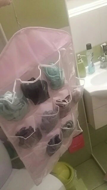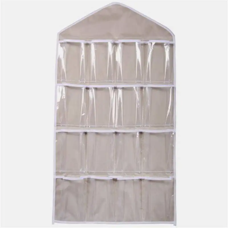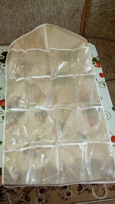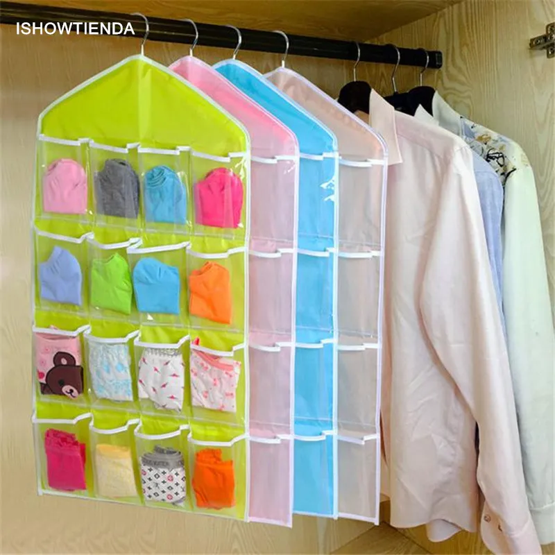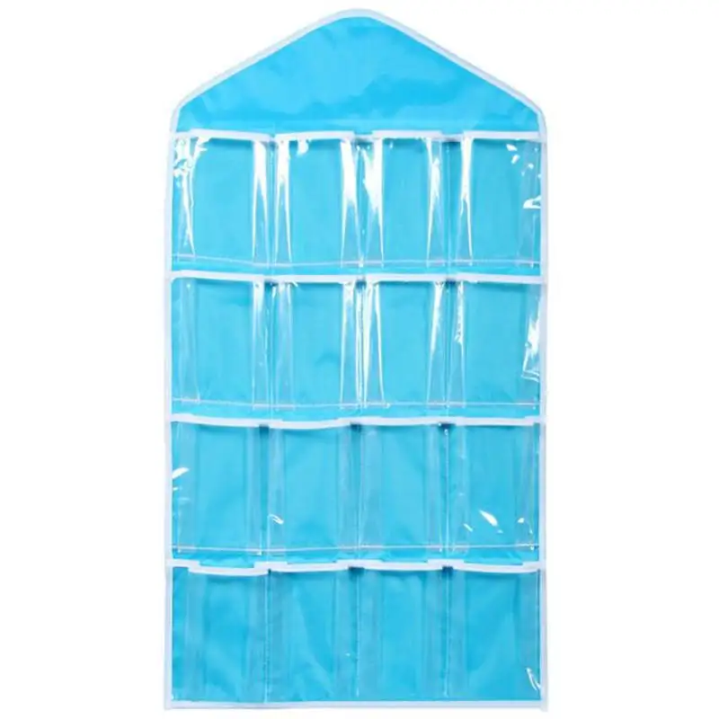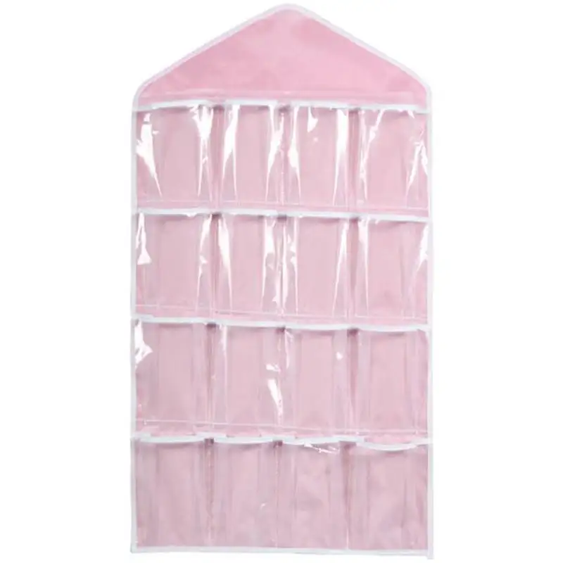 16Pockets Clear Hanging Bag Socks:Bra Underwear Rack Hanger Storage Organizer