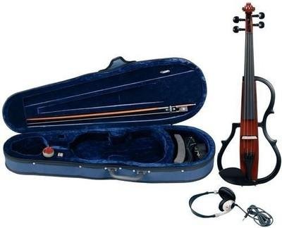 -. Title : GEWA 4/4 Electric Violin Outfit Red brown trans + Case + Bow + Headphones