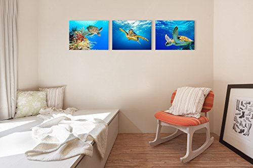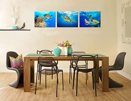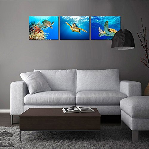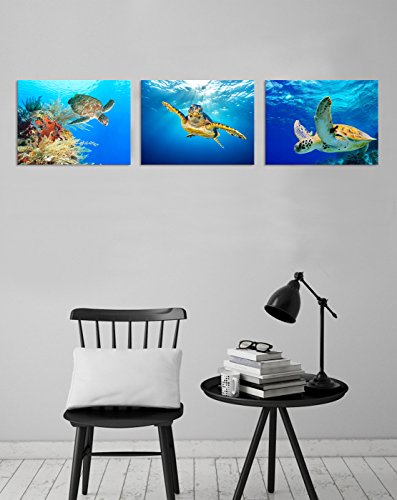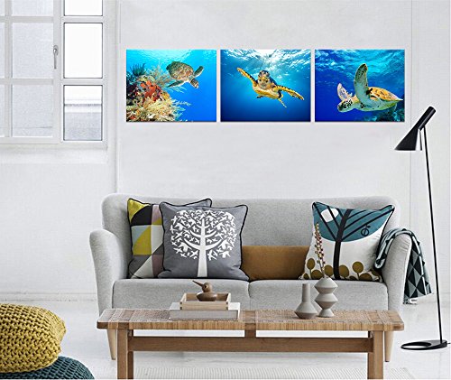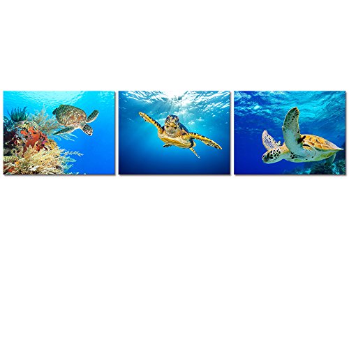 -. Title : Animal Canvas Wall Art Decor Swimming Turtle Canvas P.R.Ints Underwater Sea Wall Art Decal Gallery Wrapped Ready to Hang