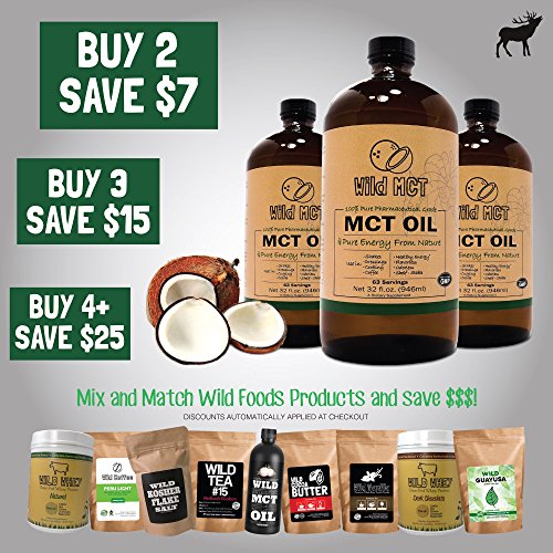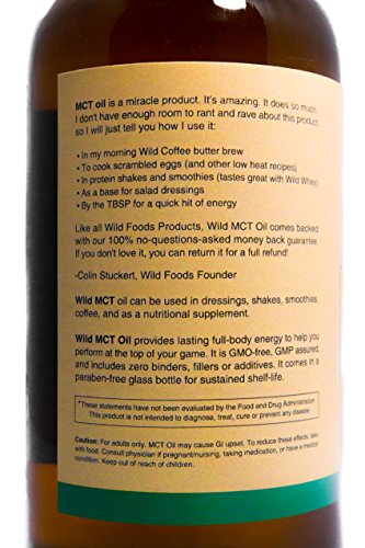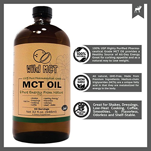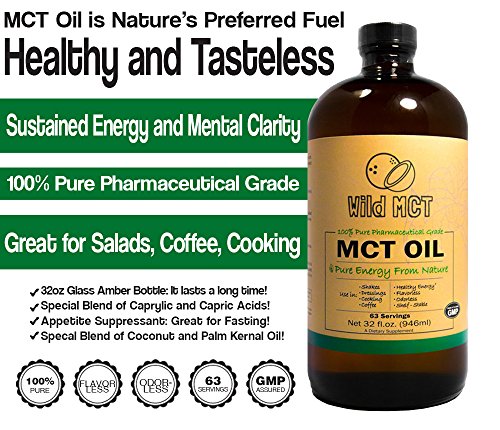 -. Feature : 100% USP Highly Purified Pharmaceutical Grade MCT Oil Made From Sustainable Coconut and Palm Fruit Kernels! Provides a Healthy Source of All-Day Energy and Health! Curb appetite and boost your metabolism. Wild MCT helps maintain healthy cholesterol levels while providing long-lasting energy! / Great for butter coffee, salad dressings, Paleo Mayo, and low heat cooking. Wild MCT comes in a huge 32oz amber glass bottle. It is GMO-Free, GMP-Assured, and includes Zero Binders, Fillers or Additives! It is made in the USA in a GMP facility. / One of Nature's Healthiest Fats. Medium-chain triglycerides (MCTs) are a unique fatty acid in that they are metabolized for energy in the body instead of being stored as fat. Add healthy fat to your diet while increasing performance and promoting health! This is what we call The Wild Way! / Wild MCT is backed by the Wild Foods 100% Money-Back Guarantee if you aren't unhappy for any reason.Wild MCT is great for Shakes, Dressings, Low-Heat Cooking, Coffee, Smoothies. It is Flavorless, Odorless and Shelf-Stable. Unlike coconut oil, it will not impart a coconut flavor... in fact... you won't taste a thing! / Wild MCT Oil is a miracle product. It has a handful of uses in the kitchen and for improving your health and performance. Take it by the teaspoonful, cook with it, add it to your coffee (especially the Wild Coffee Butter Brew), use it in smoothies, and so much more!