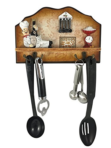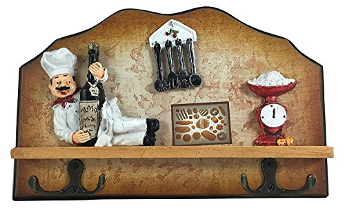 Heartful Home Wall Decor Decorative Plaque with Key Hooks - #1 Wedding, Home, or Housewarming Gift! - Hook Rack & Keychain Holder for Kitchen & Entryway - Chef, Vintage, Rose, or Lemon (Italian Chef)