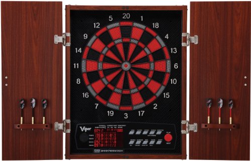 - Feature : Electronic darts game with regulation sized 15.5-inch target face, wood cabinet, and 6-inch LCD display / 57 games with 307 options for one to 16 players / Made of target tested, commercial-grade nylon segments with concave segment holes / Plugs into wall with included AC adapter / Comes with two dart sets and manual; one year warranty