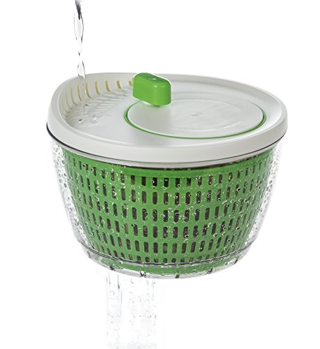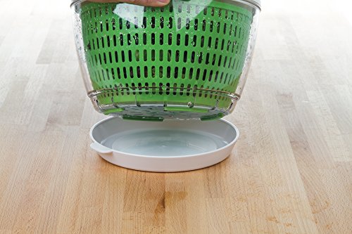 - The basket doubles as a colander and has a drip-catch base or you simply snap the base cap on to turn the spinner into a classic countertop version