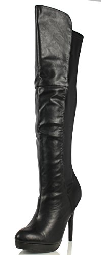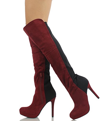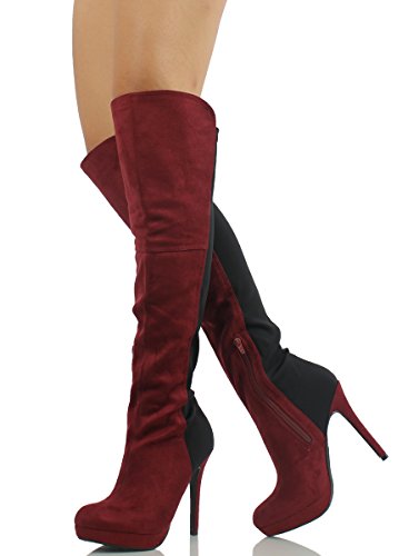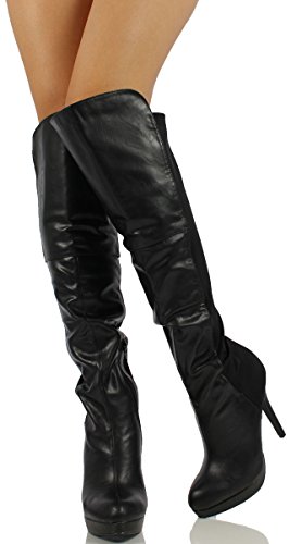 -. Binding : Apparel -. Brand : Delicious -. Department : womens -. Feature : model is a size 7, and a size 7 fits her perfectly. / manmade material -. Model : VENGA-S -. ProductGroup : Shoes -. ProductTypeName : SHOES -. Title : Delicious Women's Venga Faux Leather Over The Knee High Heel Boots