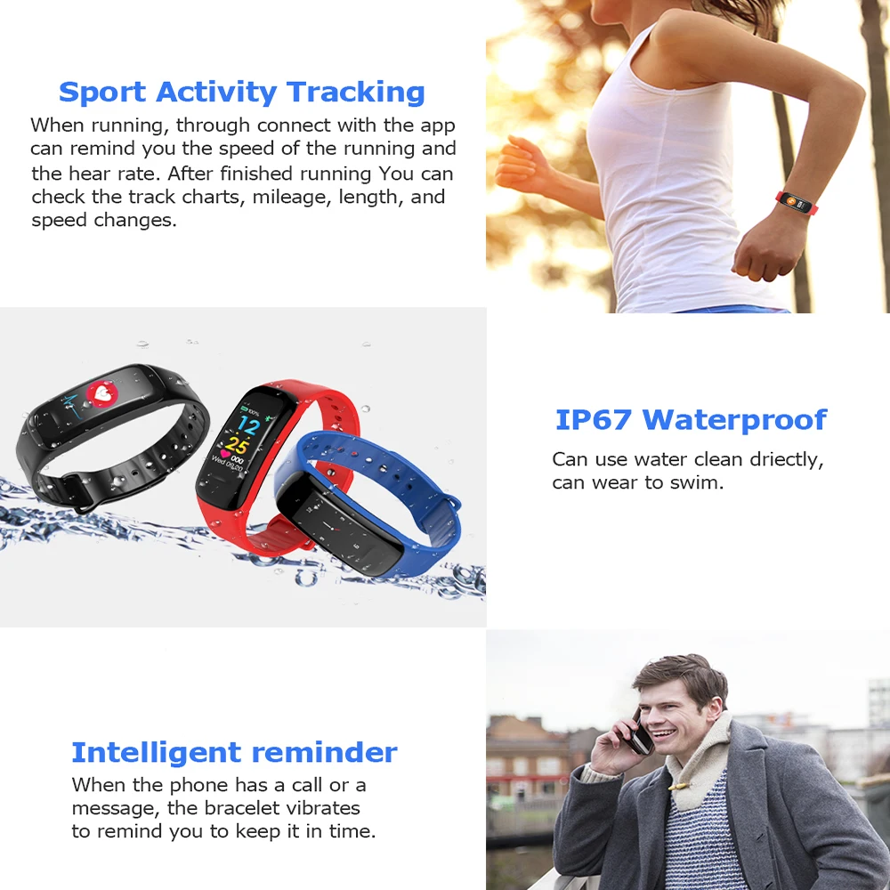 Features:Color Smart Bracelet IP67 Waterproof Fitness Watch