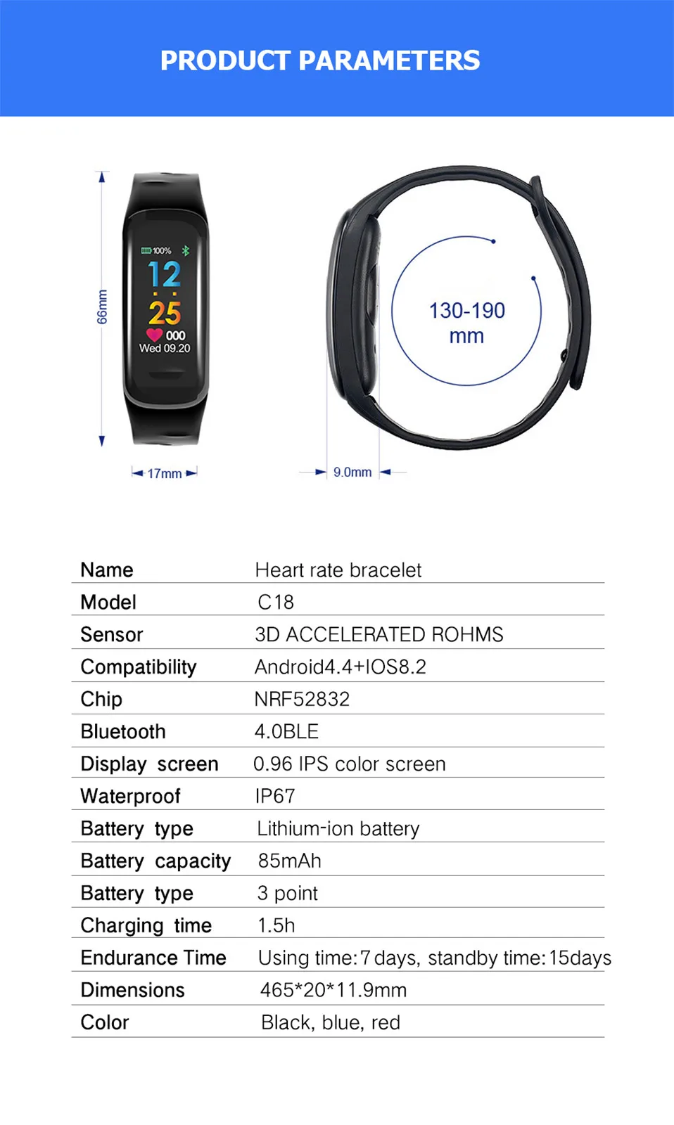 Feature C:Waterproof Color Smart Bracelet Call Reminder