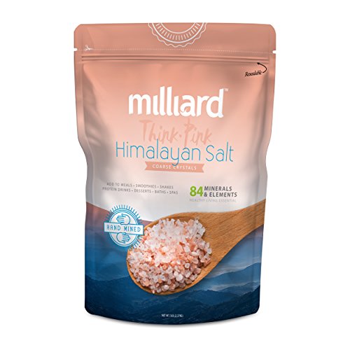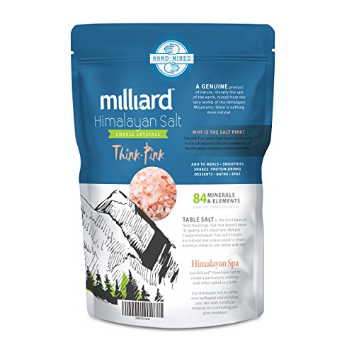 Milliard Coarse Himalayan Pink Salt contains 84 highly absorbable trace elements and nutrients deemed essential for healthy living, and is broken into large crystals for extra freshness when ground in salt mills or hand grinders over savory meals, smoothies, shakes, protein drinks, and desserts.