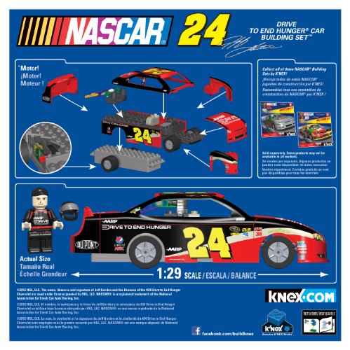 -. Binding : Toy -. Brand : NASCAR -. Feature : Now with Motorized Action! Battery operated high-speed motor in each set / Build and race Jeff Gordon's No. 24 Drive to End Hunger car / Includes K'NEXman in driver's likeness / Authentic logos and step-by-step building instructions, recommended for ages 5 and above / Requires 2 AAA batteries (not included) -. Label : K'NEX -. Manufacturer : K'NEX -. Model : 36224-Prt -. ProductGroup : Toy -. ProductTypeName : TOYS_AND_GAMES -. Publisher : K'NEX -. Studio : K'NEX -. Title : K'NEX Nascar Motorized Car Building Set