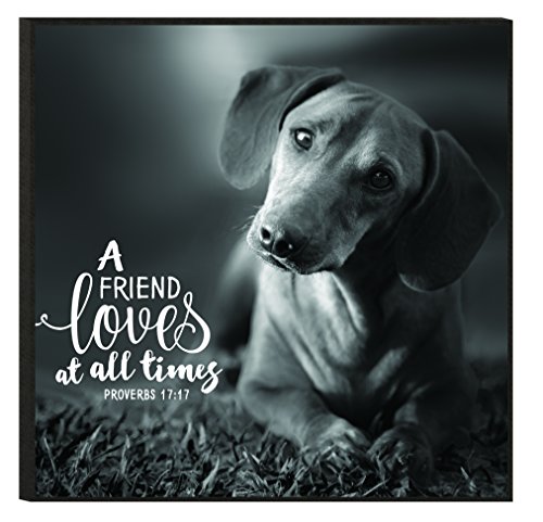 A Friend Loves At All Times Dog Black White 12 x 12 Mounted Wood Wall Art