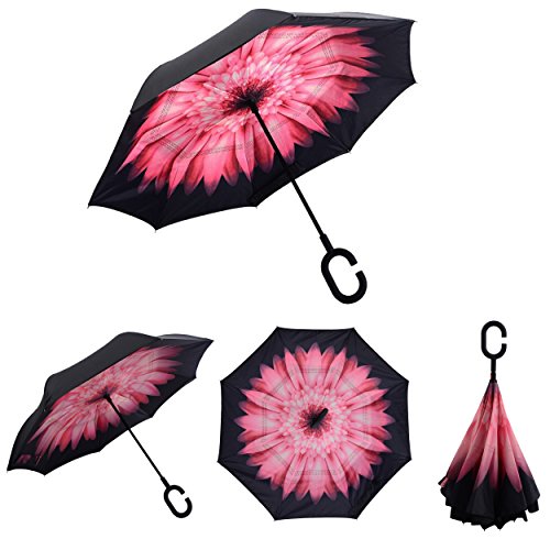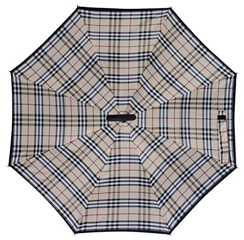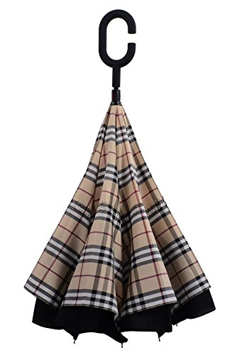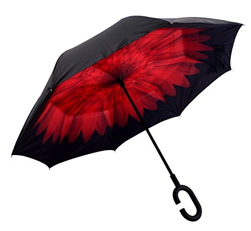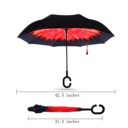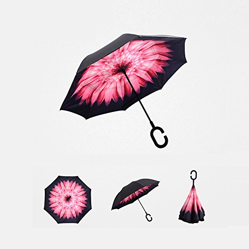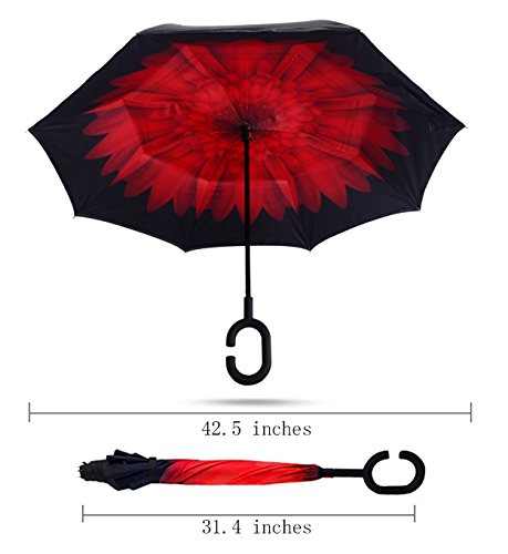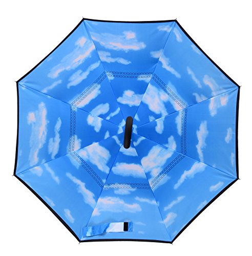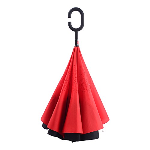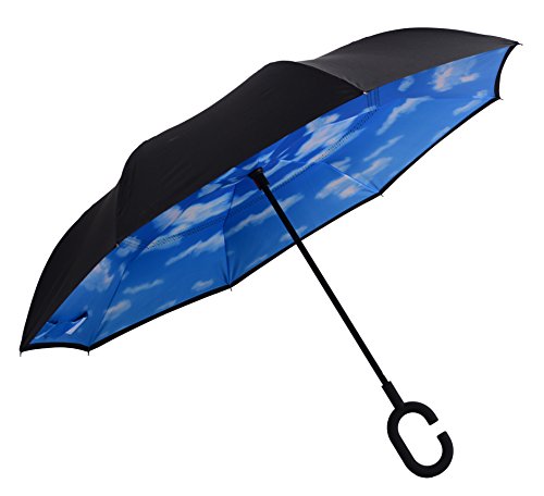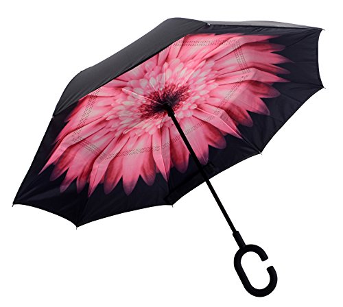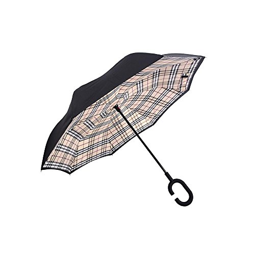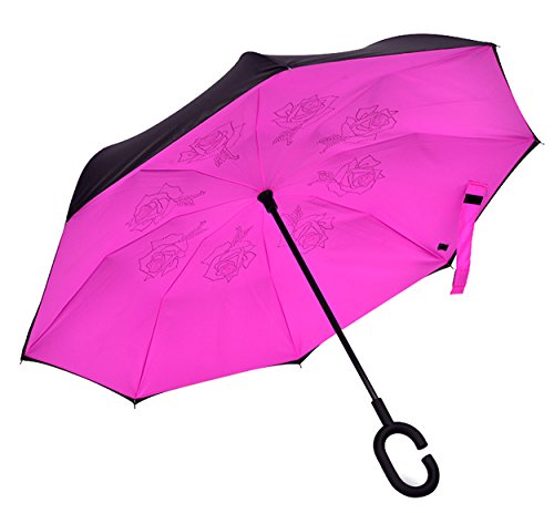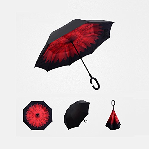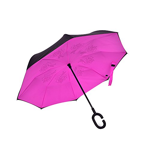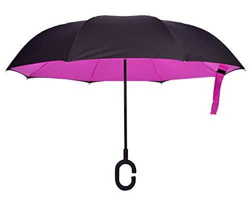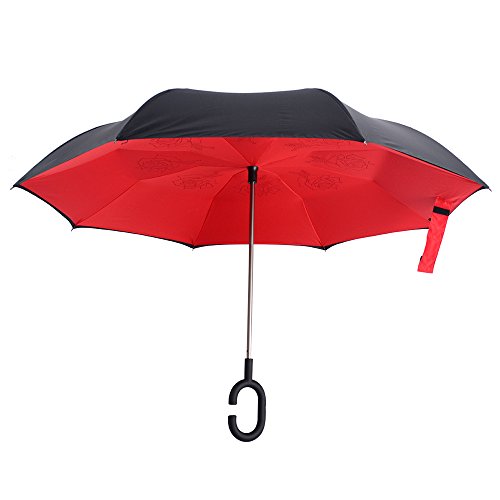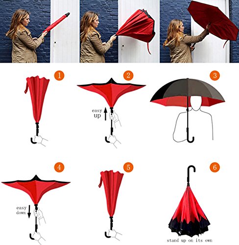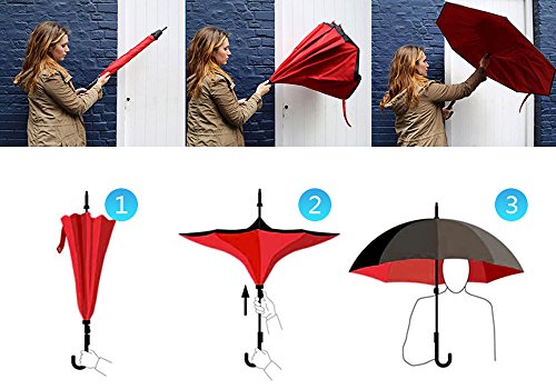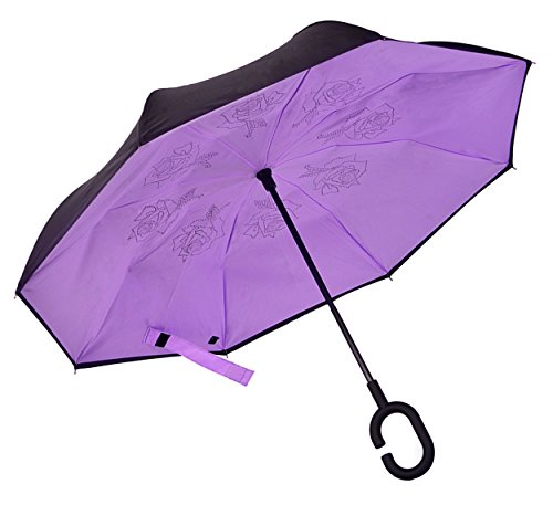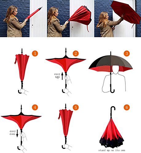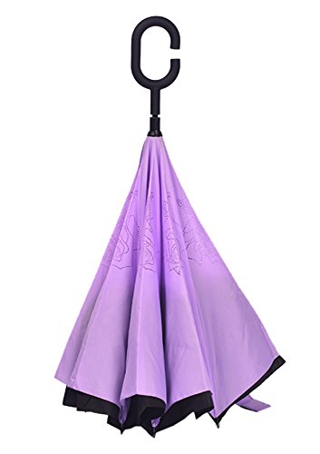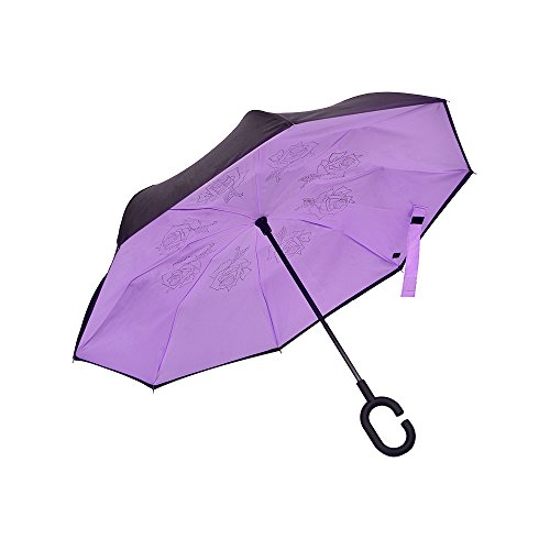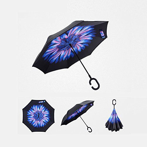 Happy GO is committed to providing high-quality umbrellas to customers around the world. Company Vision: HOLD UP LOVE, DRY YOUR WORLD! Product information: Opening diameter: 42.5 inches; packing diameter: 31.4 inches;( Enough for two people to use ) weight: 1.23 lb ;8 bone;Open mode: Manual HappyGo Outside Inverted Umbrella, a creative idea to make life a little different . 1.Unique Design( Reverse Folding style): you can open this inverted umbrella while you open the door (car) and not get yourself wet, when you close the reverse umbrella, getting back in the car, the water stays inside of the umbrella and doesn't get the car floor wet( The dry side of the umbrella will come outside and the wet side will come inside when it was closed ). Self stand: when you don't have much floor space to drip up an umbrella, just put it at a little corner. It will stand up by itself without wet the wall. 2.Double Layer style ventilation lining,UV protection: The Rain Protection Umbrella is made with double layer anti - UV clothes , not only for rainy day, but also great for sunny day. The double layer umbrella has ?second ventilation holes, which has a good wind proof effect. 3. Humanized design: Fashion C shape handle,cross the C-shape handle over your arm and made you hands free. Hands free by hanging the C-shaped handle on your wrist, very convenient when holding a baby, playing your mobile or carrying something in hand. 4. Durable and windproof; The strong metal frame supports the double layer Pongee Clothes to keep the elegant shape in wind. 5. Perfect gift; The umbrella is very suitable for driving users, as well as to their own family, friends as a family commonly used umbrella. Package include: 1 * HappyGo Double Layer Wind Proof ?Cars Reverse Straight Umbrella 0 |