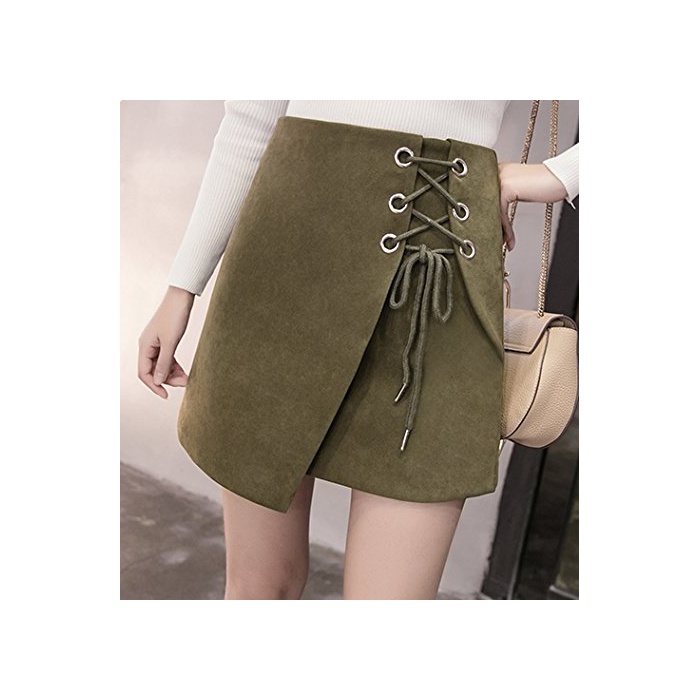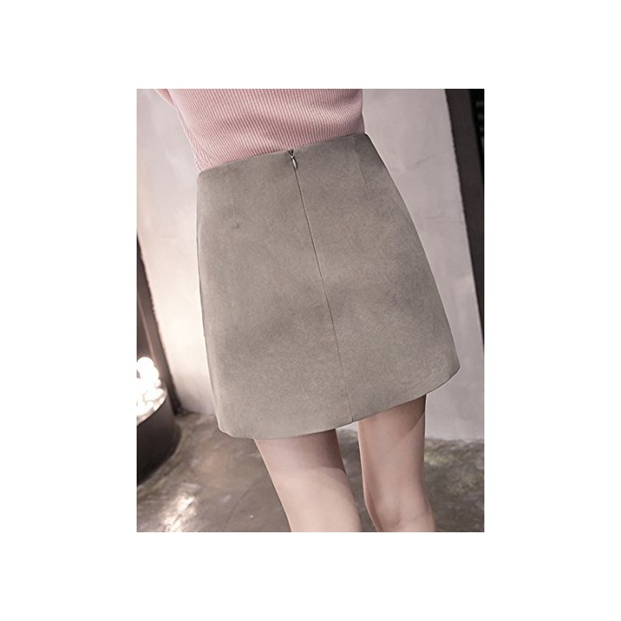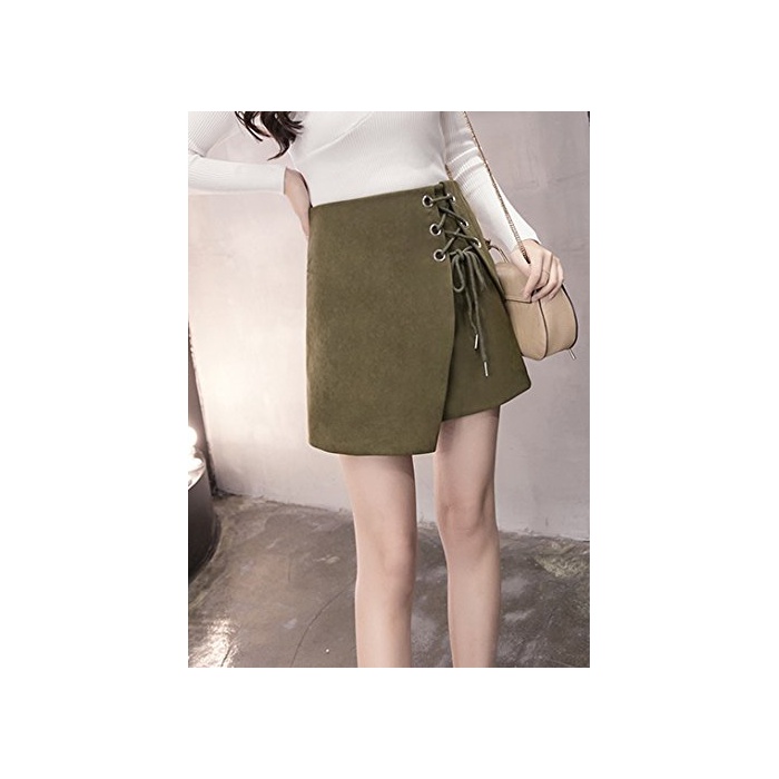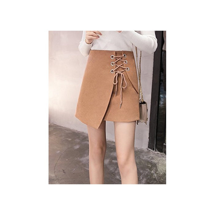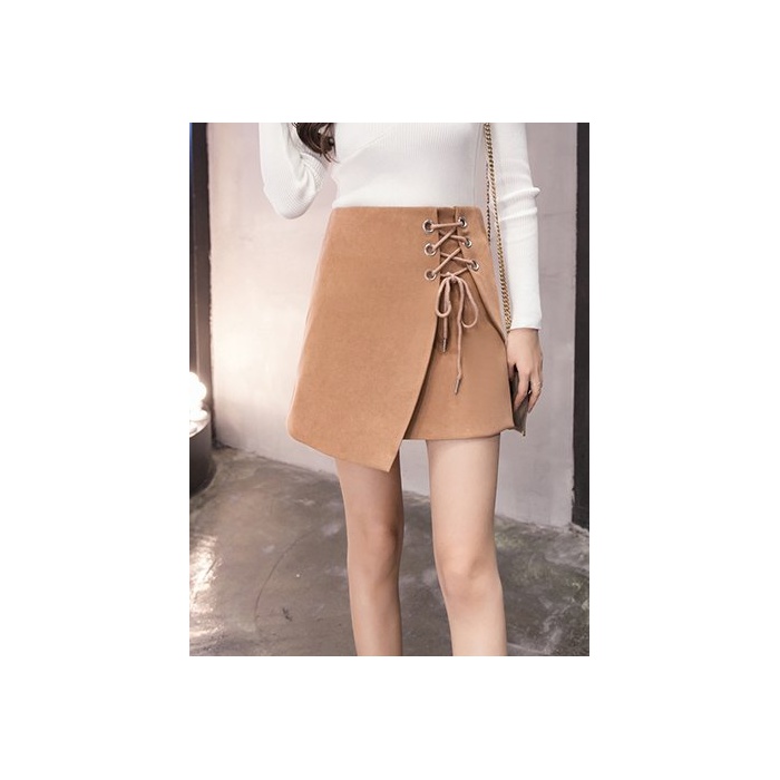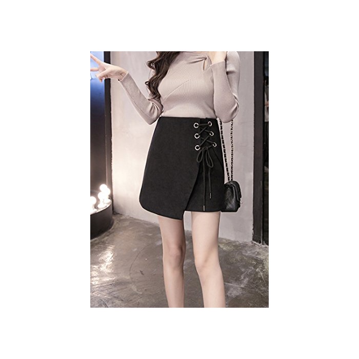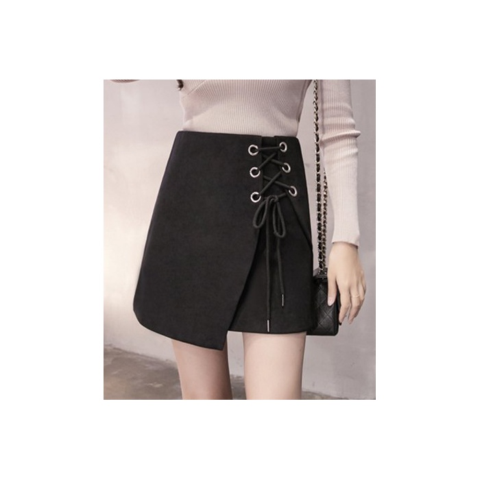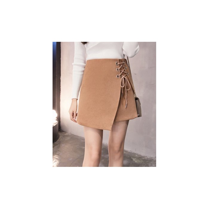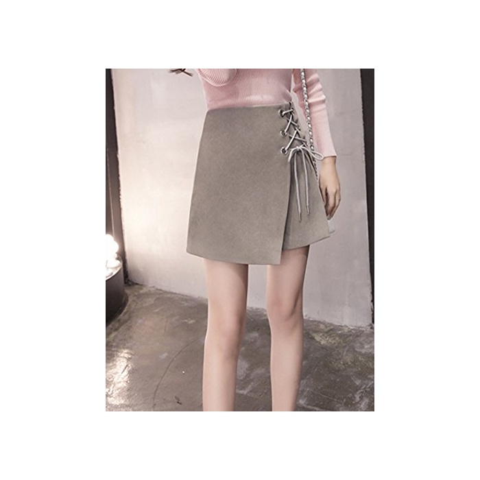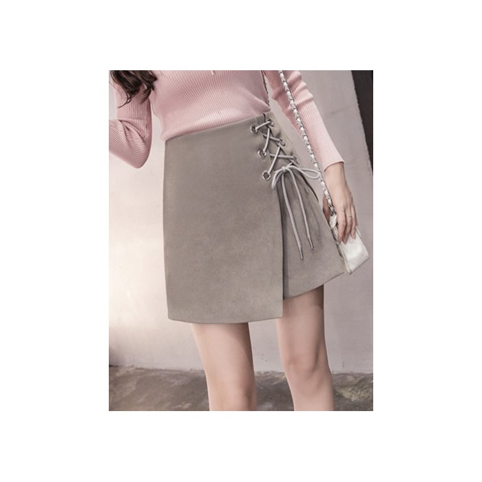 ELPIS 레이디스 레이스 업 사다리꼴 미니 스커트 랩 스웨이드 4색 그레이 S