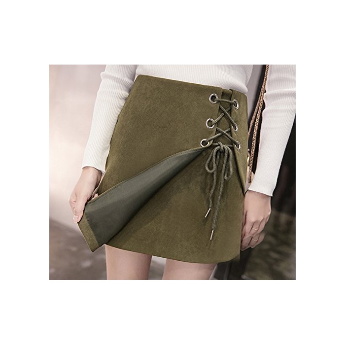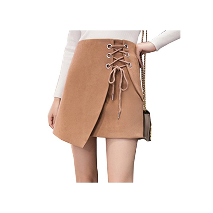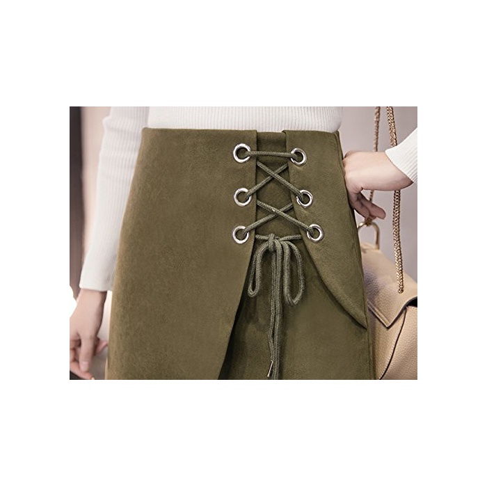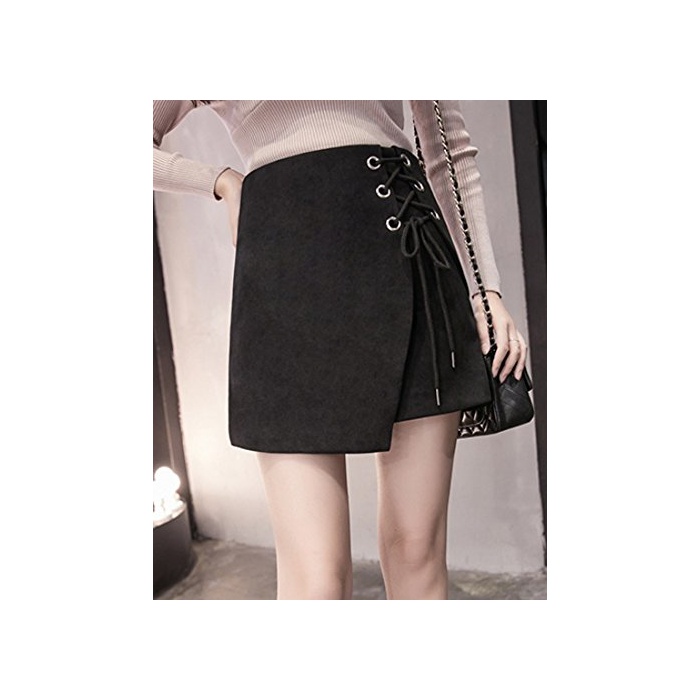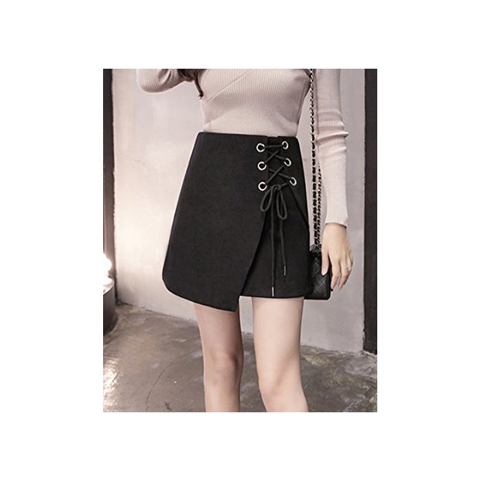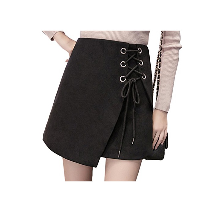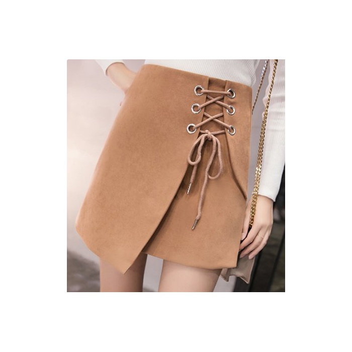 원본상품명:ELPIS レディ?ス レ?スアップ 台形 ミニ スカ?ト ラップ スエ?ド 4色