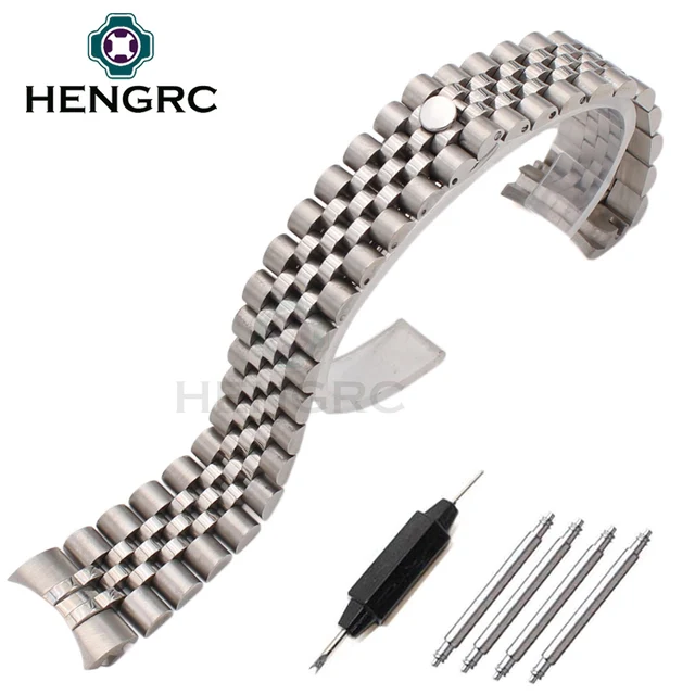 | [해외] HENGRC 20 미리메터 스테인레스 스틸 시계 밴드 스트랩 팔찌 곡선 엔드 실버 레이디 패션 링크 시계 줄 액세서리 |