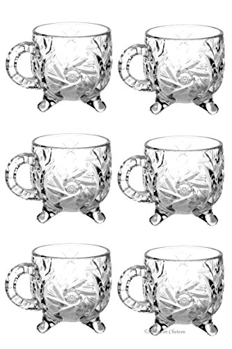 -. Brand : American Chateau -. EAN : 0886221480773 -. Feature : ELEGANT SET: 6 piece set of cut glass, 5 oz footed tea mugs with pinwheel design. / HIGH QUALITY: Made of durable, clear glass which is dishwasher safe. / MULTI-USE: Use as traditional Turkish or Persian tea glasses, or as elegant punch cups. / GIFTBOXED: Includes gift box for easy gift giving! / Approximate Size: 3.75 inches x 2.75 inches x 3.75 inches -. Label : American Chateau -. Manufacturer : American Chateau -. MPN : CN4ND026 -. PartNumber : CN4ND026 -. ProductGroup : Kitchen -. ProductTypeName : KITCHEN -. Publisher : American Chateau -. Studio : American Chateau -. Title : Set 6 Pinwheel Cut Footed 5oz Glass Turkish Persian Tea Punch Glasses Cups Mugs -. UPC : 886221480773