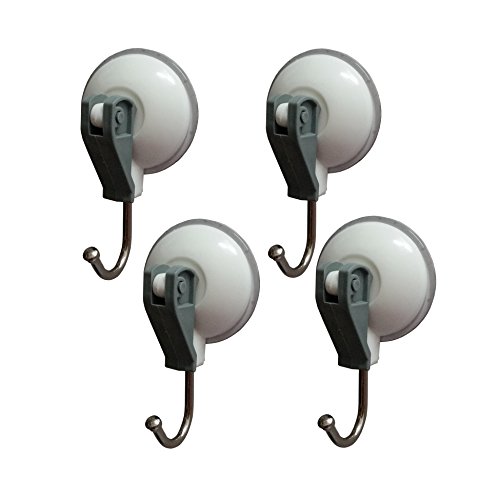 [4 Pieces] Doinn Strong Power Lock Suction Hooks On Any Non-porous Smooth Surface - Glass Tile Metal and Mirror