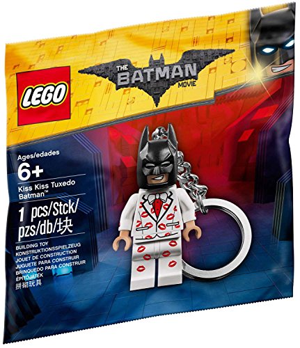 -. Feature : Pucker up with your very own Kiss Kiss Tuxedo Batman™ key chain, just one of the many funny alternative costumes featured in THE L.E.G.O BATMAN MOVIE.