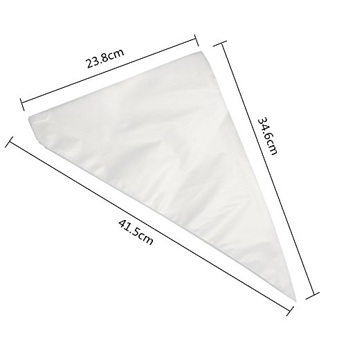 Package & Size -- 15 Inch / 34*24cm; 100 Pcs disposable pastry bags which are thickened, transparent and anti-skid design