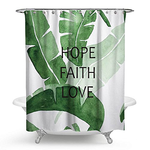 Bensonal Shower Curtain for Bathroom Waterproof Banana Leaf Green With 12 Hooks Mildew Resistant
