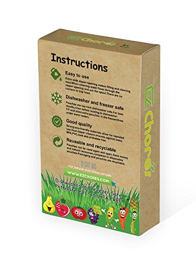 DISHWASHER AND FREEZER SAFE: Pouches are dishwasher safe. For best results, rinse before loading in dishwasher. Fill and store extra pouches in the freezer. Clear transparent bags make it easy to identify packaged content.