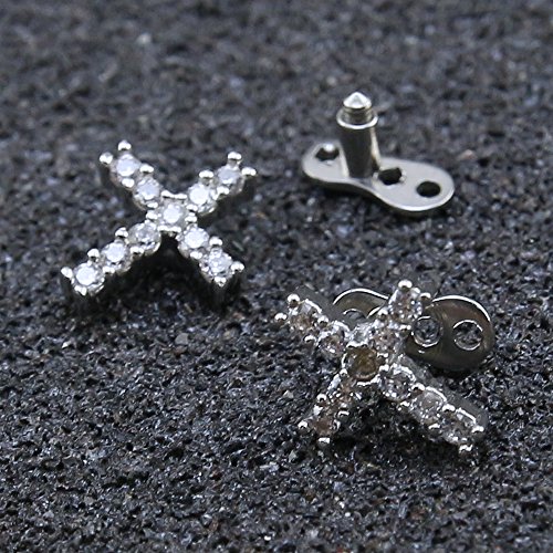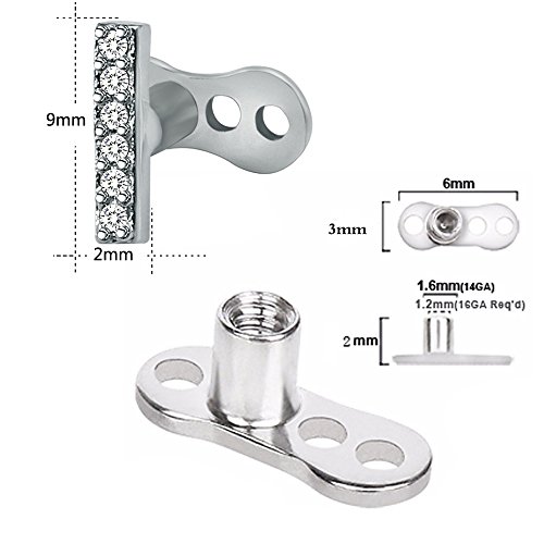 -. Title : 14g Cubic Zirconia Dermal Anchor Tops and Base Surgical Steel Microdermals Body Piercings